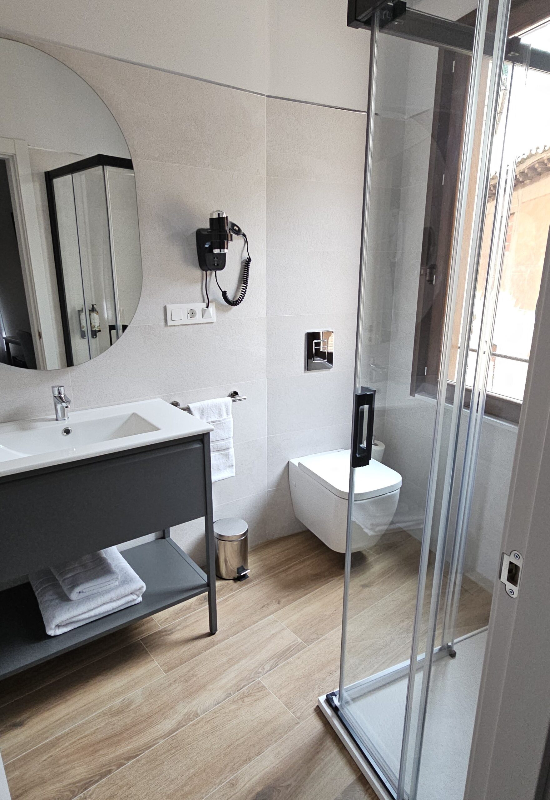Ofrecemos 8 habitaciones doble exteriores amplias y muy luminosas. Todas ellas están personalizadas con cuadros de la ciudad.